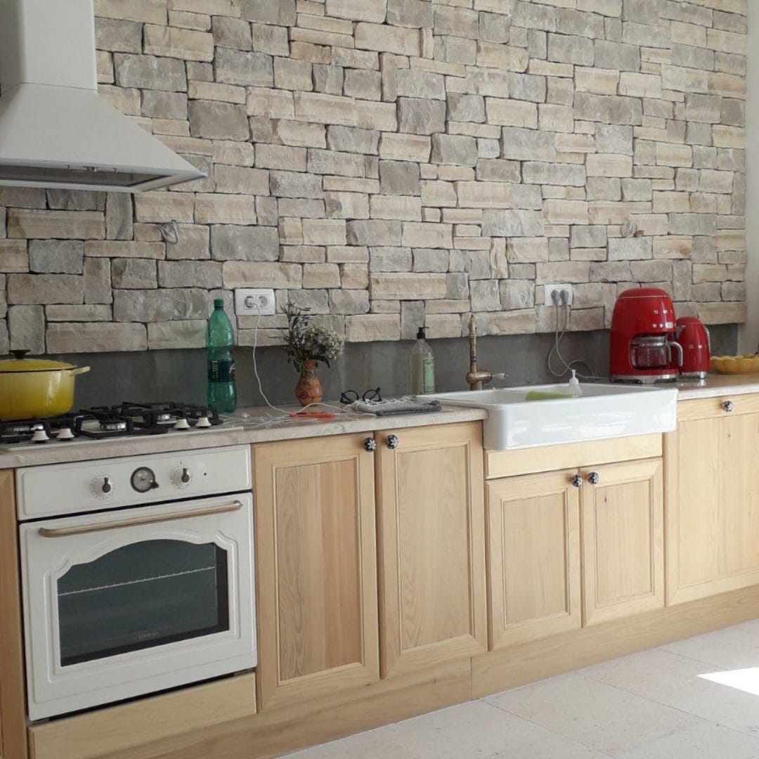 ✔ Ästhetik – Schafft das Erscheinungsbild einer natürlichen Steinmauer, was dem Raum eine warme und traditionelle Atmosphäre verleiht.